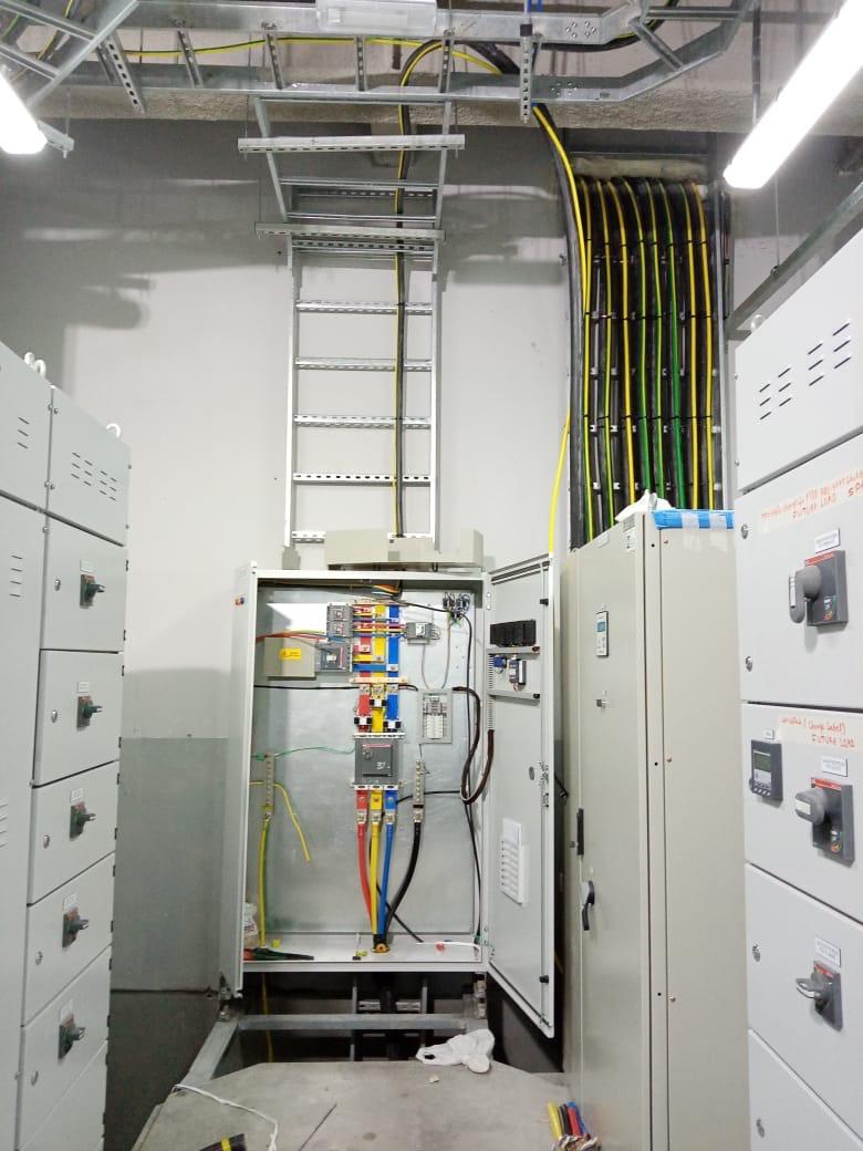 Comprehensive electrical work, including cable tray installation, cable pulling, GI pipe trunking, BMS integration, and panel installation.